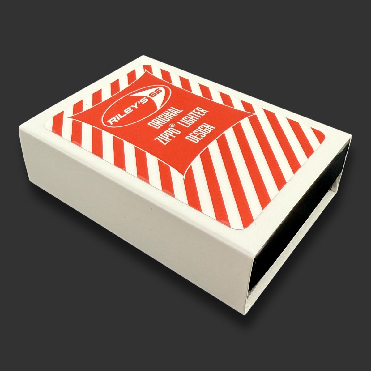 Channeling the sophistication of the atomic age, this Chuck Riley design captures mid-century modernism through bold geometric shapes and striking colors. The Diagonal Weave finish amplifies the angular composition, creating visual depth that celebrates the era's distinctive style. The original Zippo gift box, Exclusive Candy Stripe outer sleeve, Atomic Martini sticker, and signed certificate of authenticity are included.