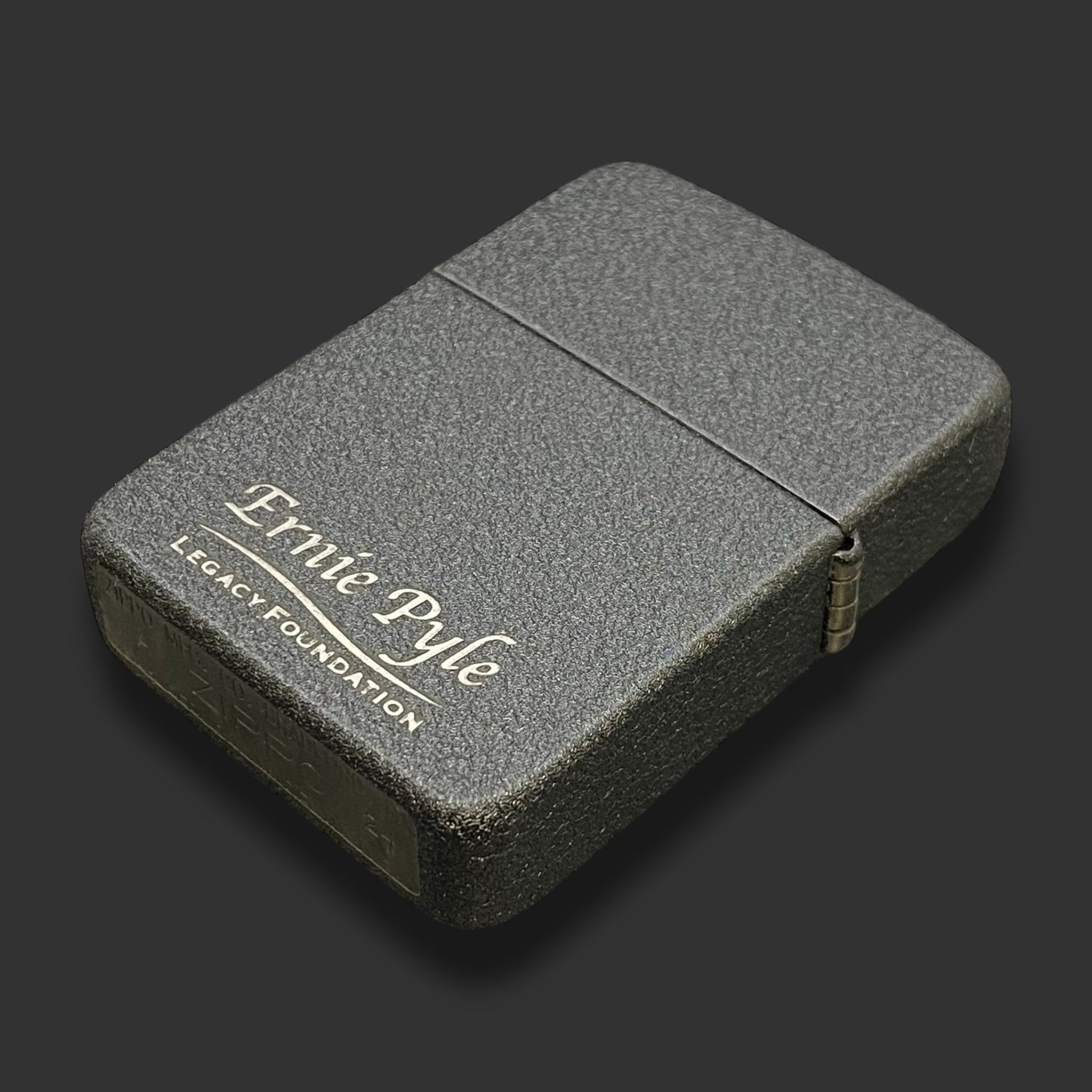 Riley's 66 is honored to partner with the Ernie Pyle Legacy Foundation in producing this Ernie Pyle Tribute Zippo lighter. The Ernie Pyle Legacy Foundation was formed in 2013 to continue the legacy of Ernie Pyle and ensure the ongoing recognition of his accomplishments. They work to create public awareness of the journalism style of his writings and provide opportunities for dialogue among working journalists, students and the public. The lighter design echoes the WWII era on the 1941 Replica lighter with Black Crackle finish. The bulk of the proceeds from the sale of the lighter go to the Foundation to help in their ongoing efforts. The orange safety label was removed for the photos (lighter will ship with the label attached). The lighter includes the original box, outer sleeve, guarantee paperwork, and Certificate of Authenticity.