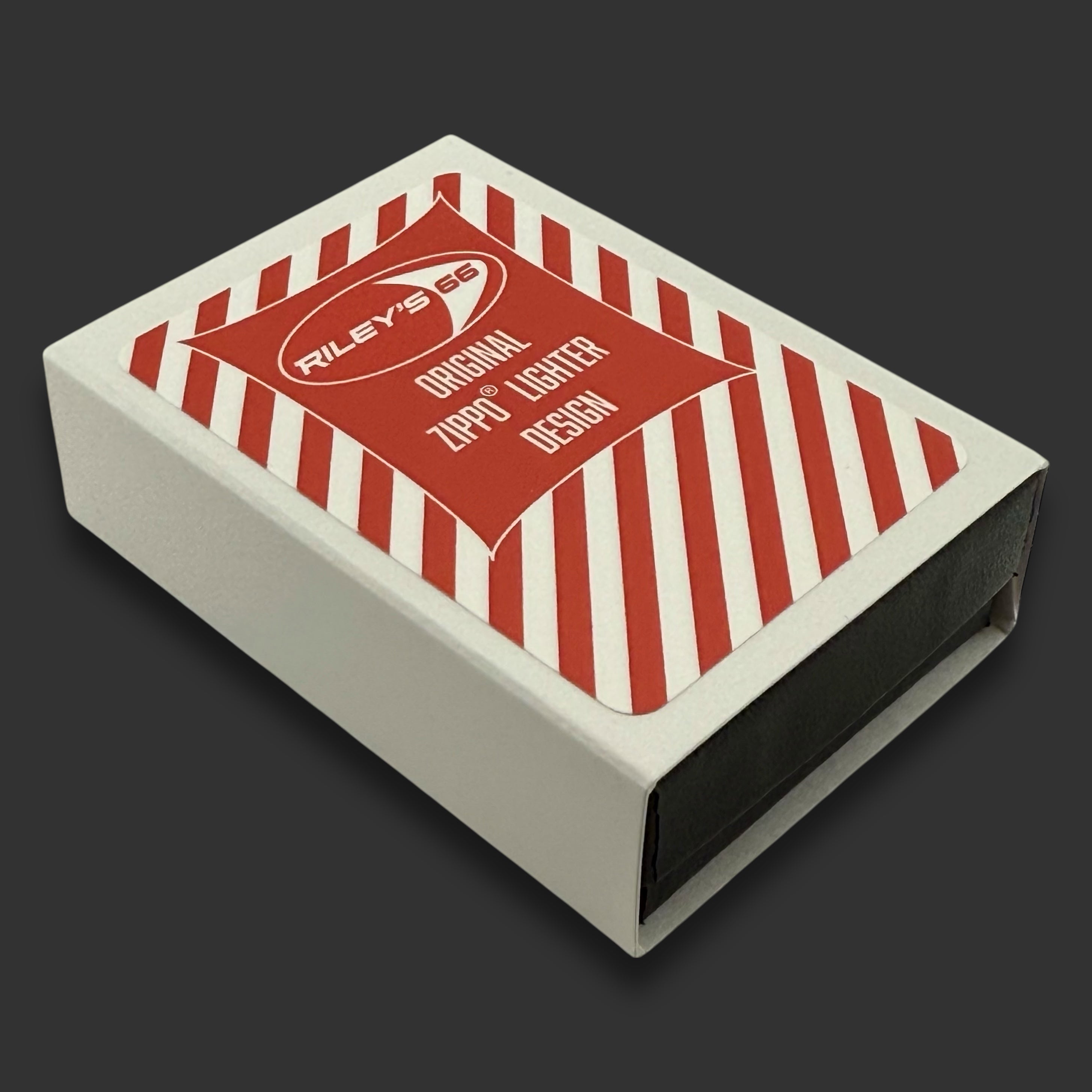 This Zippo lighter design by Chuck Riley features an awesome Toolbox-inspired aesthetic. Utilizing the Texture Print process, our upright Toolbox design comes to life. The Zippo gift box, Candy Stripe sleeve, Riley's 66 name badge sticker, and Riley's 66 Certificate of Authenticity are included. Order now and elevate your collection today!