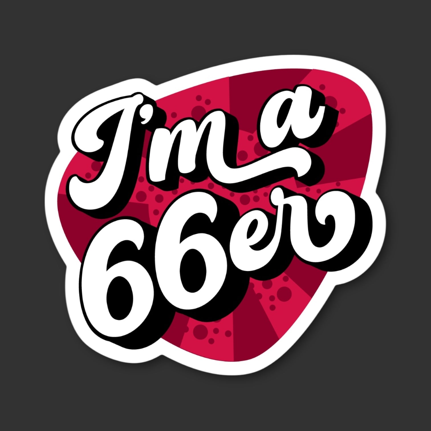 Show your friends that you’re a 66er with this design by Chuck Riley. These die cut stickers are made of thick, durable vinyl and they are resistant to scratches, water, and sunlight. Each sticker measures 3" x 2.81”.